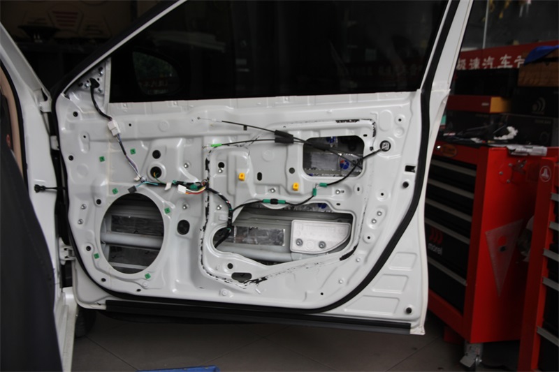 凯美瑞原车门板内层结构十分简陋,音响升级隔音必不可少