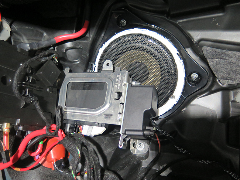 奔驰C200L中低音喇叭安装于原装位防火墙位置;