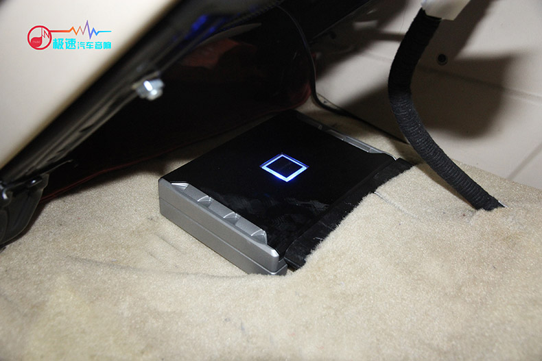 日本阿尔派PDR-F50四路功放安装在座位底下,每台功放接线处师傅都会安装一个保险盒,起保护作用,且和德国喜力士8路音频处理器安装在一起。