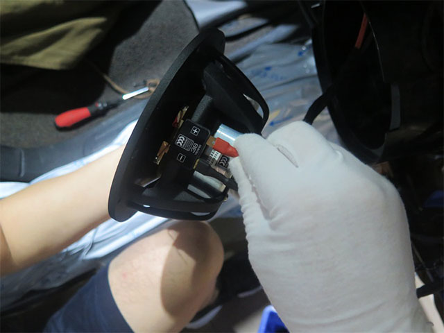 对门板喇叭进行接线特写
