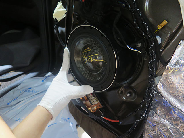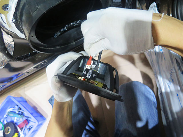 喇叭的安装,在广州极速有着十分严格的标准的工序流畅,喇叭,防水罩,木垫圈三者缺一不可。喇叭能够完美的放入在防水罩和木垫圈内不受到挤压和松动。固定在车门板上时,必须用螺丝才用对角拧紧,这样才能完美固定在门板之上。无论是喇叭的接线还是功放的接线,都要进行不标准的焊接,以及线头的套管处理。保证线材接线的稳定和用电电流的流通性。