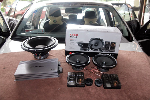 在音响器材的选择上,车主针对的是前声场的改装,选择了一套法国劲浪PS165两分频喇叭,并用一只美国来福R1S4低音喇叭进行补充,整个系统用一台雷动RC70C4进行推动,这是保证扬声器正常发声的驱动助力。在安装细节上,极速展现了一家专业口碑店的水准,门板喇叭加装防水罩进行保护,线头焊接套管,防止暴露的线芯之间产生电流干扰。专业店就是做专业事!