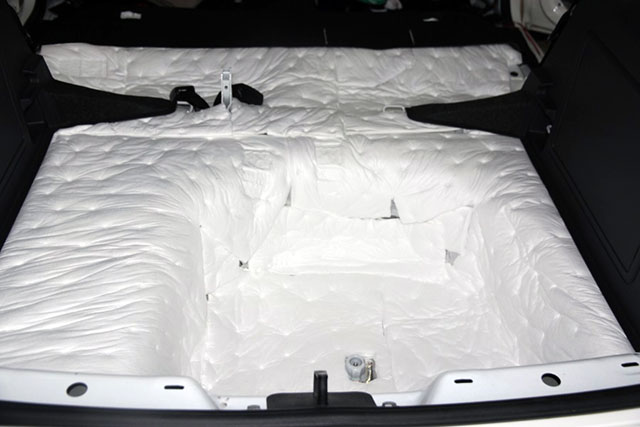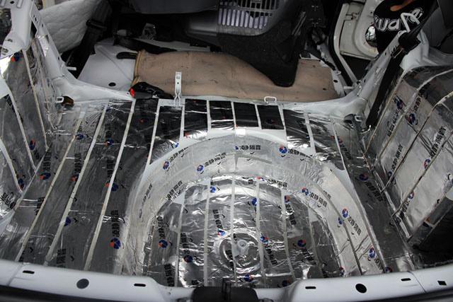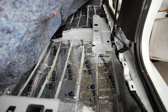 尾箱进行第二层隔音处理看,对尾箱进行密封,隔音效果更佳