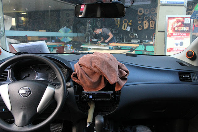 日产骐达在广州极速店内施工