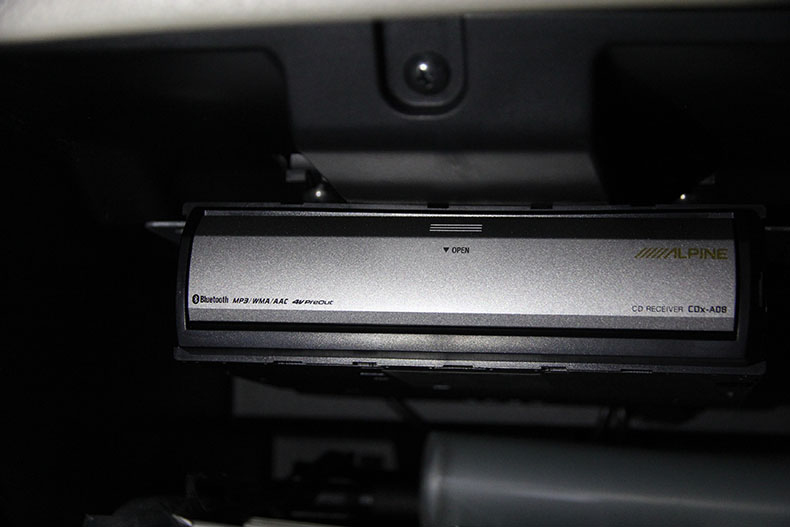 主机选择了阿尔派A08,其中的亮点是:其分体式的设计解决了车主不想换原车主机,或者不舍得动中控台的升级方案。机身与面板约有3米的连接线,也使得有安装空间灵活。如将机身隐藏于副驾的储物盒内,或者放在座位底下,面板装于扶手位,中控台,头顶后视镜等都是不错的安装方式。
