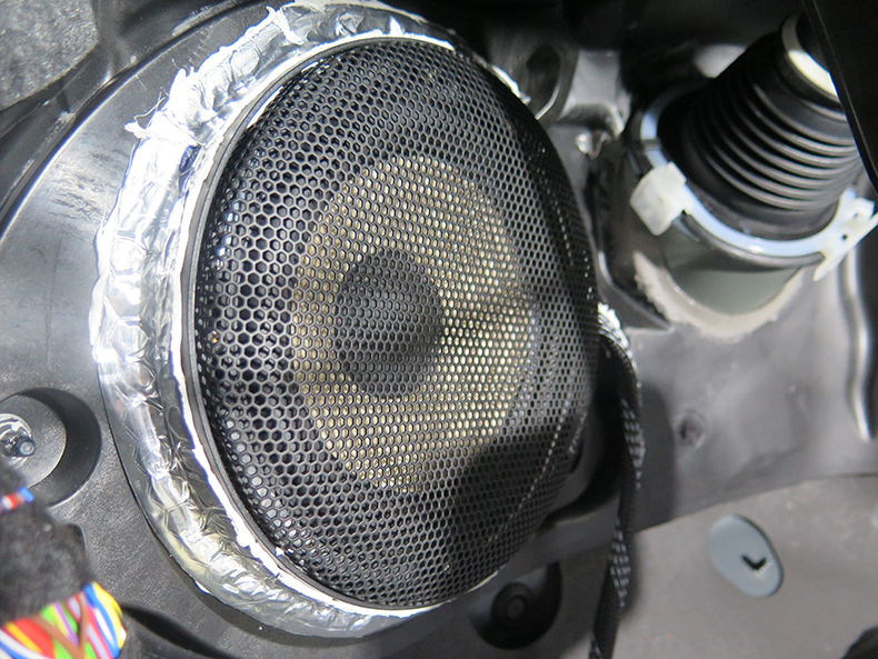 奔驰C200L中低音喇叭安装于原装位防火墙位置;
