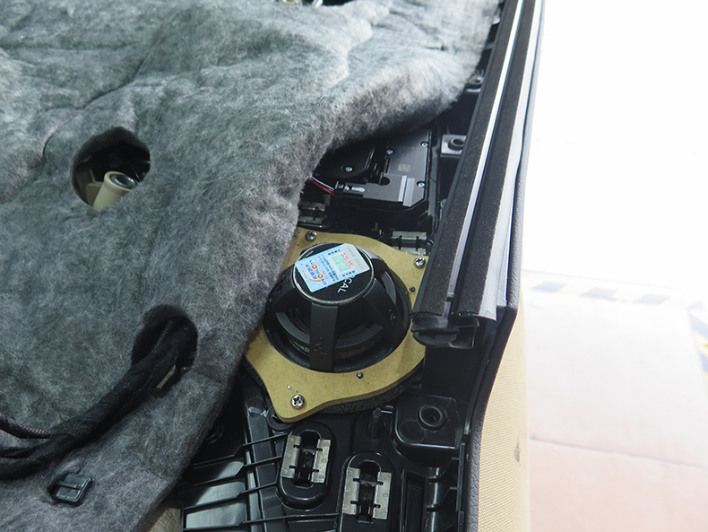 中音喇叭安装于原车门板处;高音则安装于原车三角位处