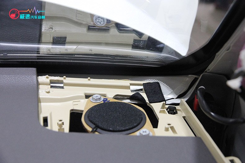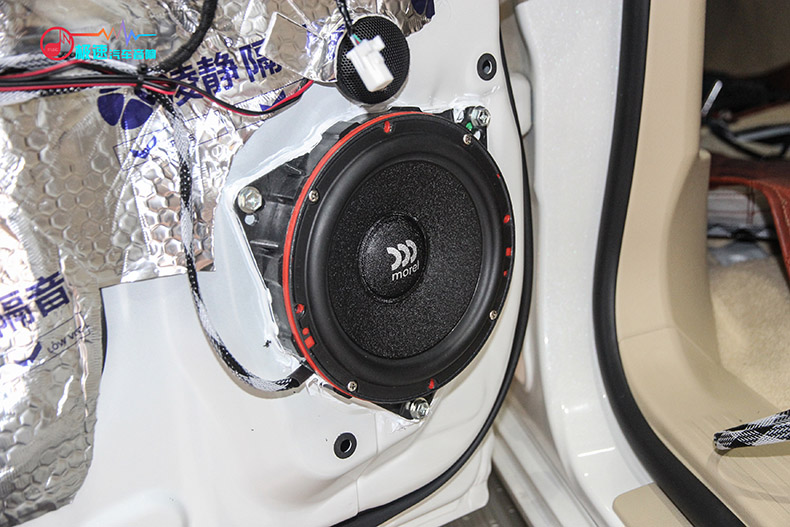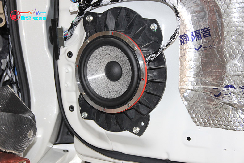 前声场法国劲浪165W-RC 中低音喇叭安装在原车门板喇叭位置上。