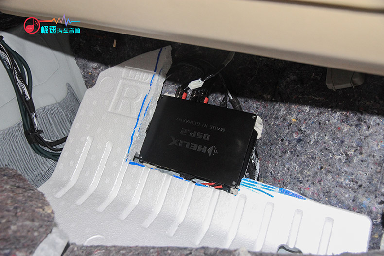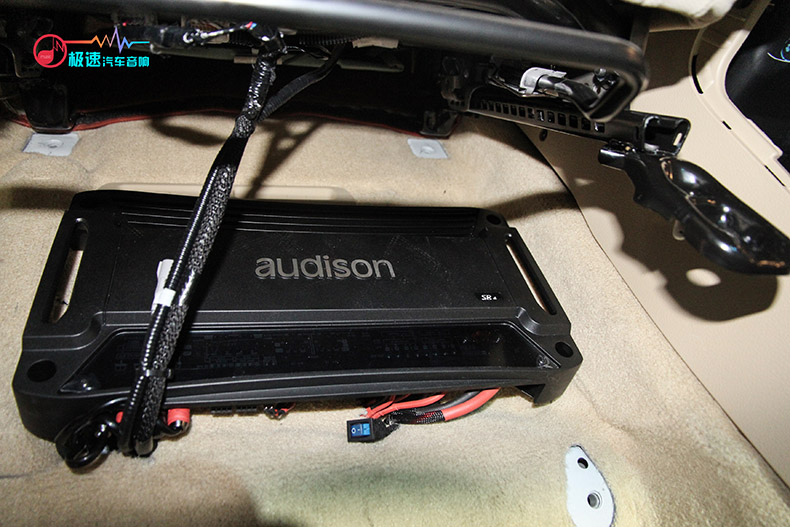 意大利欧迪臣SR4四路功放安装在座位底下。