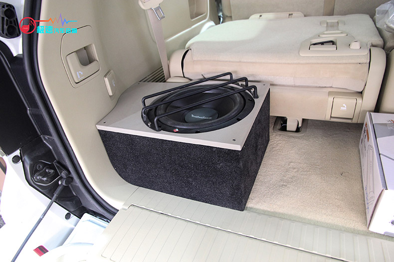 后备箱是美国来福R2D4十寸低音炮,箱体是师傅专门为车主设计,亲手打造的低音箱体。