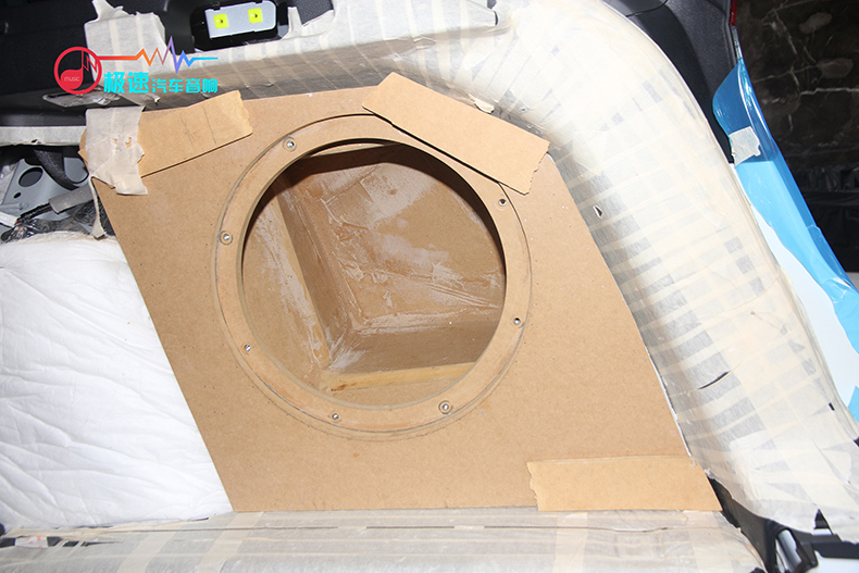 超低音选择了美国来福10寸T1S1,其特点是低频下潜有力,稳定性好,更能接受大动态的歌曲重播而不失真。它又是安装在哪里呢?也是一个箱体置于后尾箱吗?不是的,同样也是隐藏安装在后尾箱 ▼