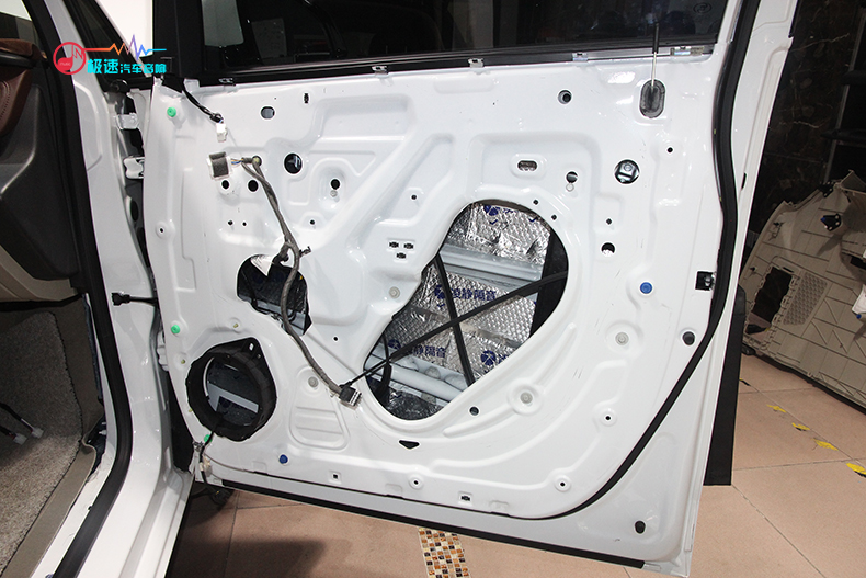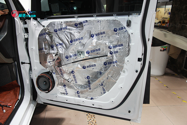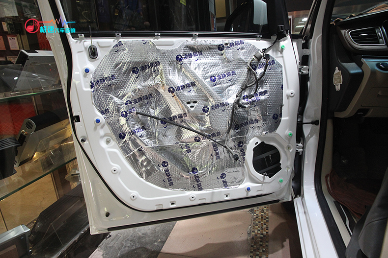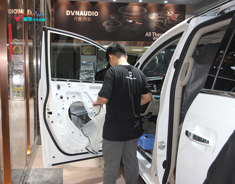 2017款别克GL8原车四门隔音只是一层薄膜,师傅将其拆掉后擦拭干净后重新贴上凌静四门隔音的止震板和吸音棉,四门隔音不仅提升音响音质,还可以降低风噪。