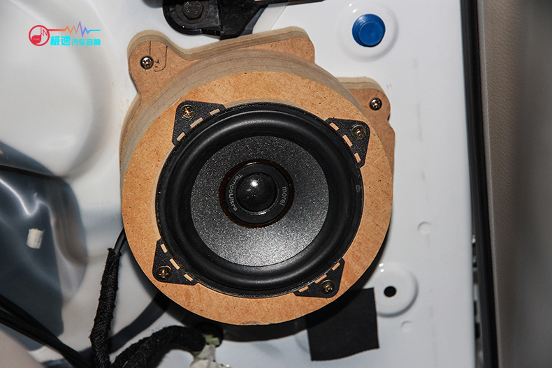 以色列摩雷听爱卓402同轴4寸喇叭原车位安装,喇叭垫由师傅手工打造。