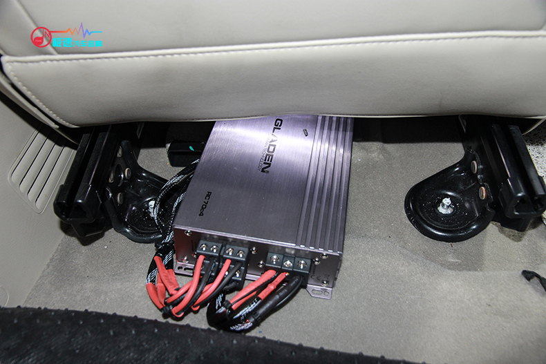 接着就是德国鼓动RC70C4四路功放安装在座椅底,与劲浪分频器安装在一起