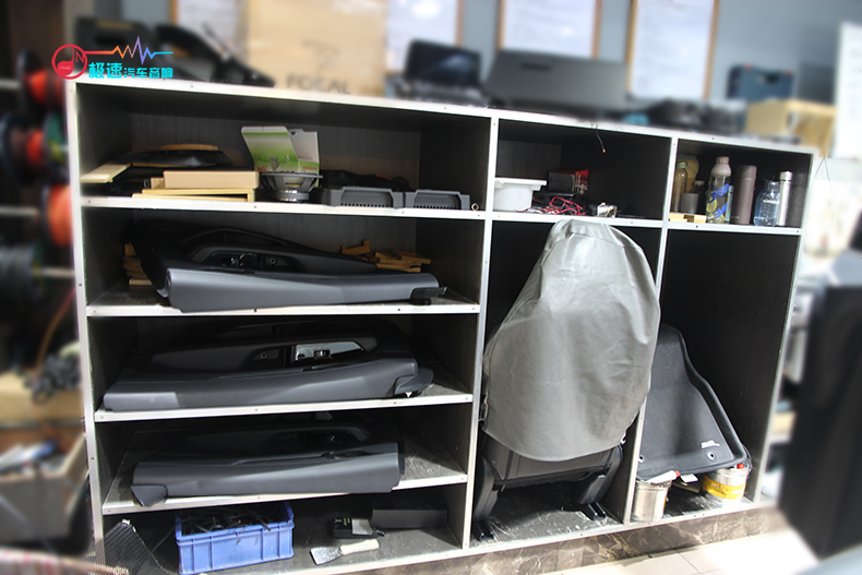 同样车主交车给师傅,师傅会先做个全面功能的检查,确认无误后开始施工。师傅开始将卸下来的门板饰盖、座椅等原车部件安放于保护柜。