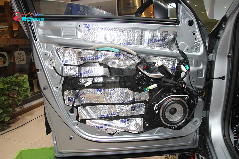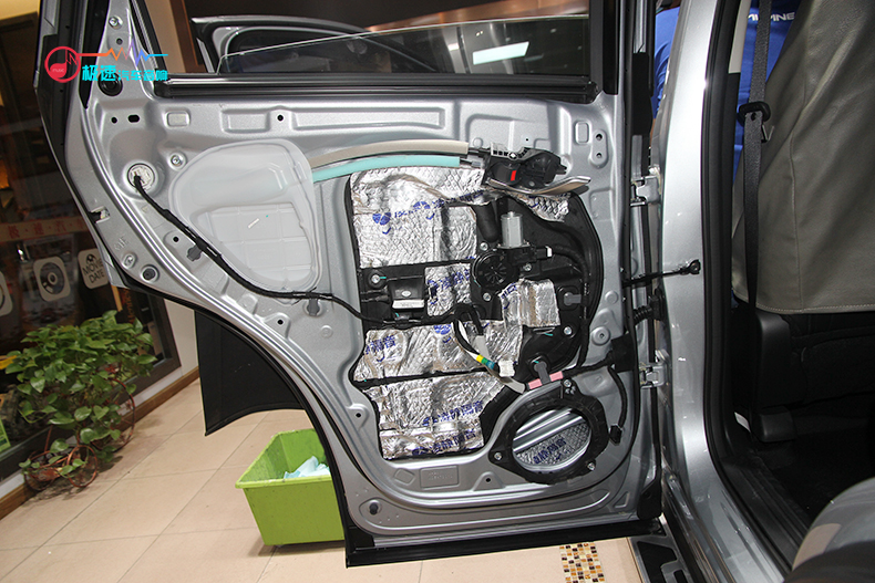 开始四门隔音施工,师傅根据马自达CX-5的车况做了条形隔音,马自达CX-5原车的隔音相对其他一层薄膜的好很多。