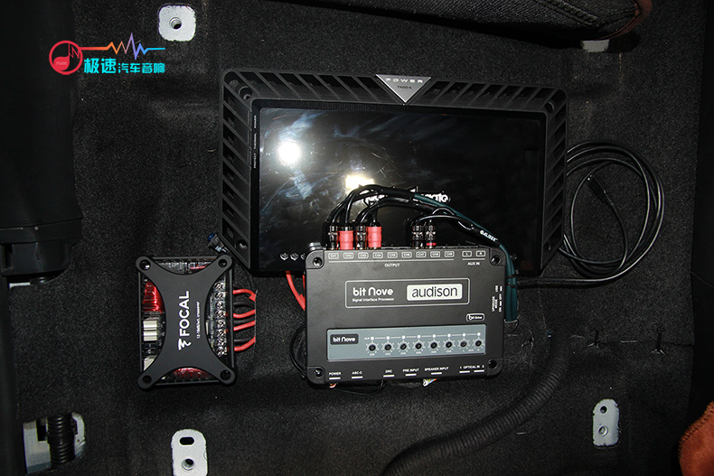 整套系统怎么少得了音频处理器即DSP呢?搭配了一台来自意大利欧迪臣的9路功放Bit Nove,调音师有了这个好搭档,更是大有作为。同样安装在座椅底,与功放、分频器、电容安装在一起。
