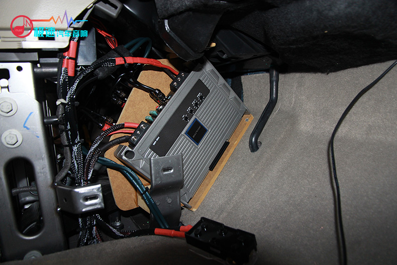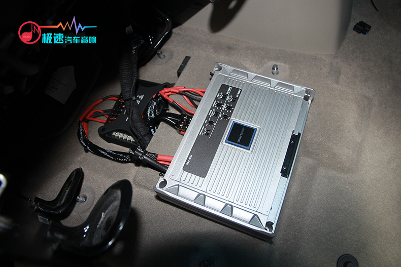 阿尔派PDR-F50四路功放推动喇叭,让喇叭发挥更好的效果,将其隐藏安装在座椅底