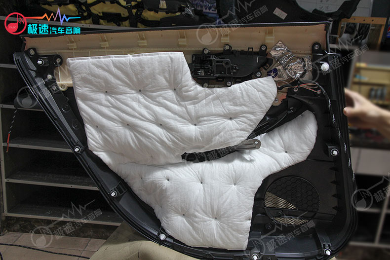 亚洲龙原车门板的隔音还是比较薄弱的,针对音响改装,车主选择用凌静环保材料做四门三层隔音。
